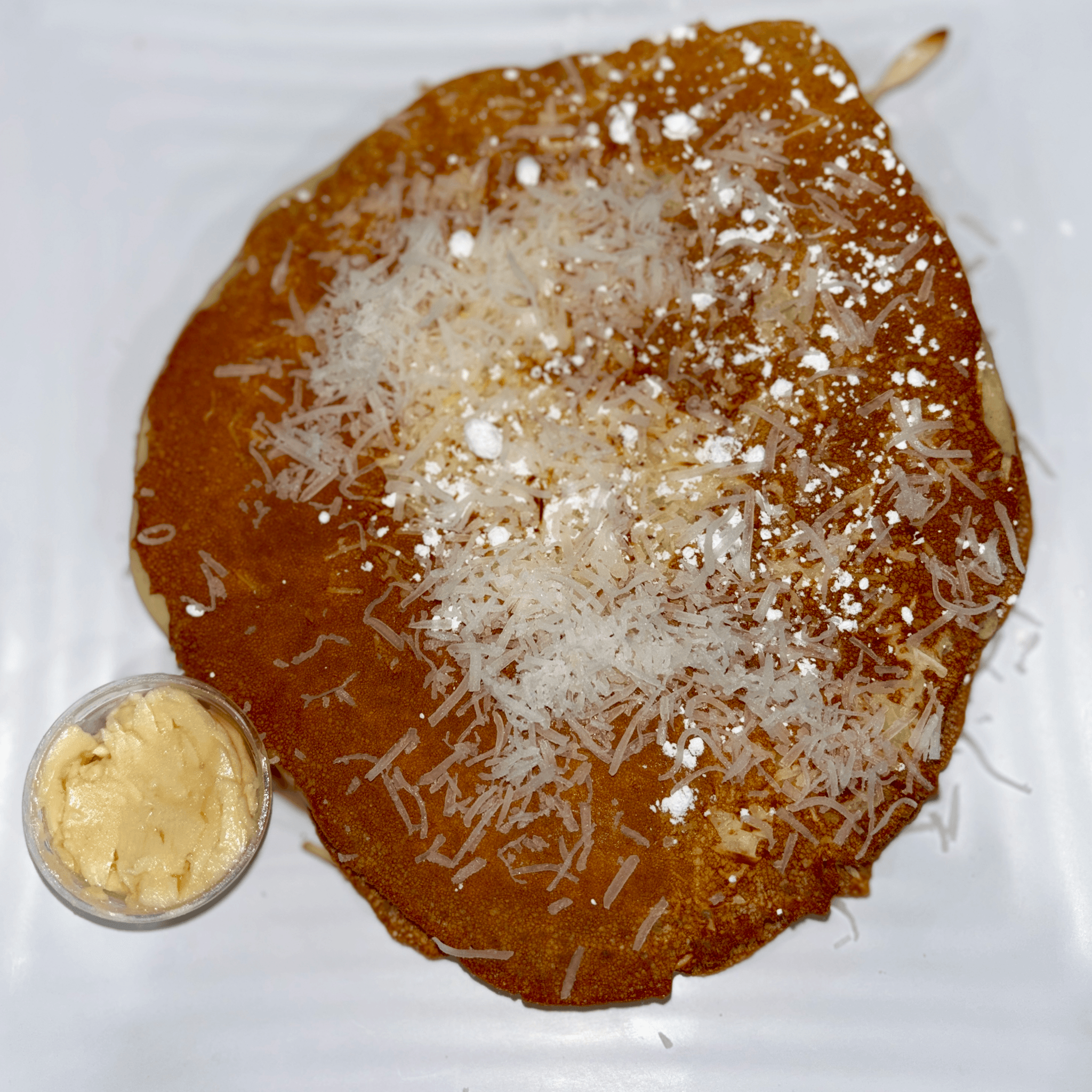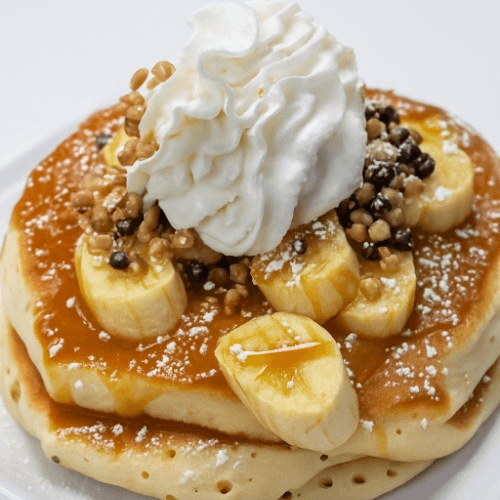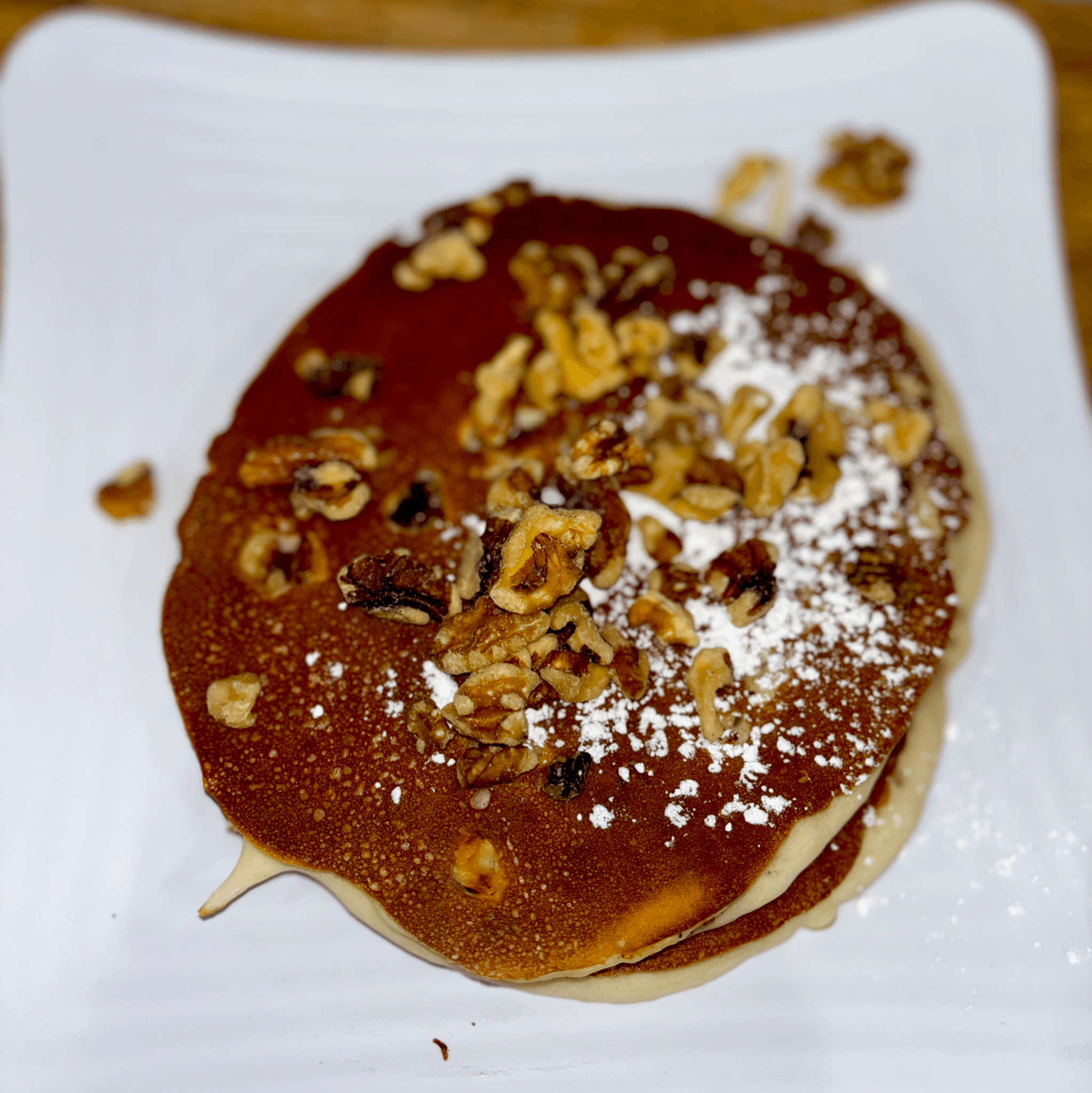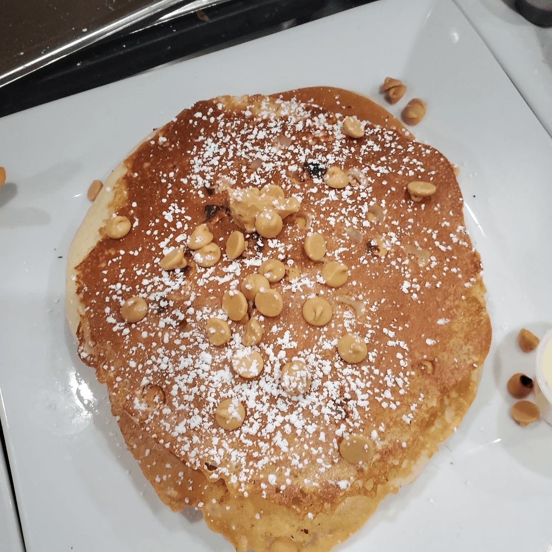 Your choice of pancakes, French toast, or waffles. The Village homemade from scratch pancakes, French toast, and waffles served with powdered sugar, butter and syrup