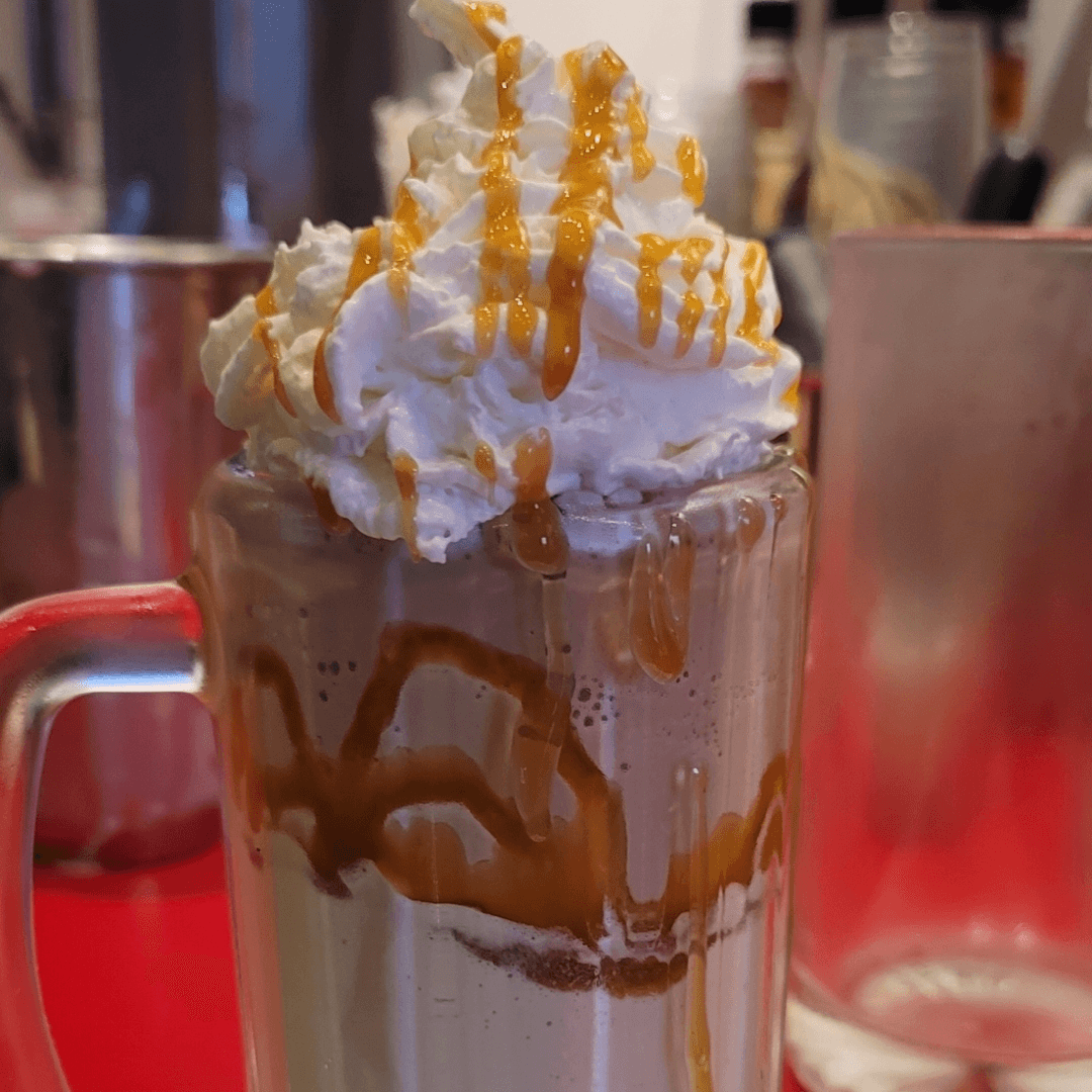 Double espresso, steamed milk, whipped cream, caramel, & cinnamon