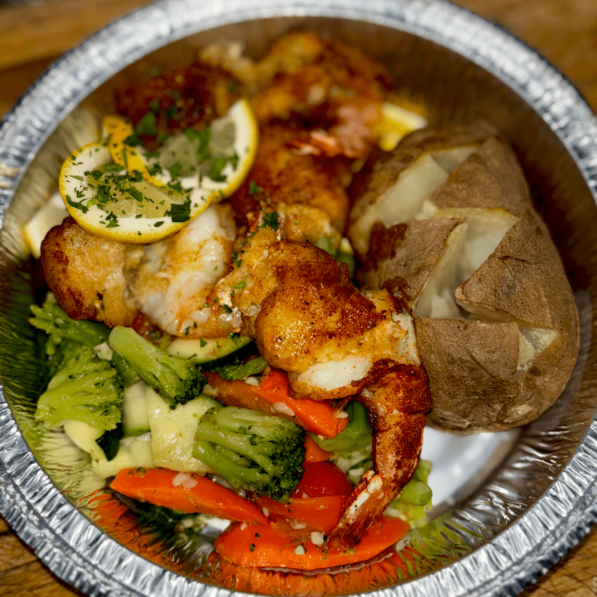 Made with white wine, garlic, and lemon. Served with potato & vegetable.