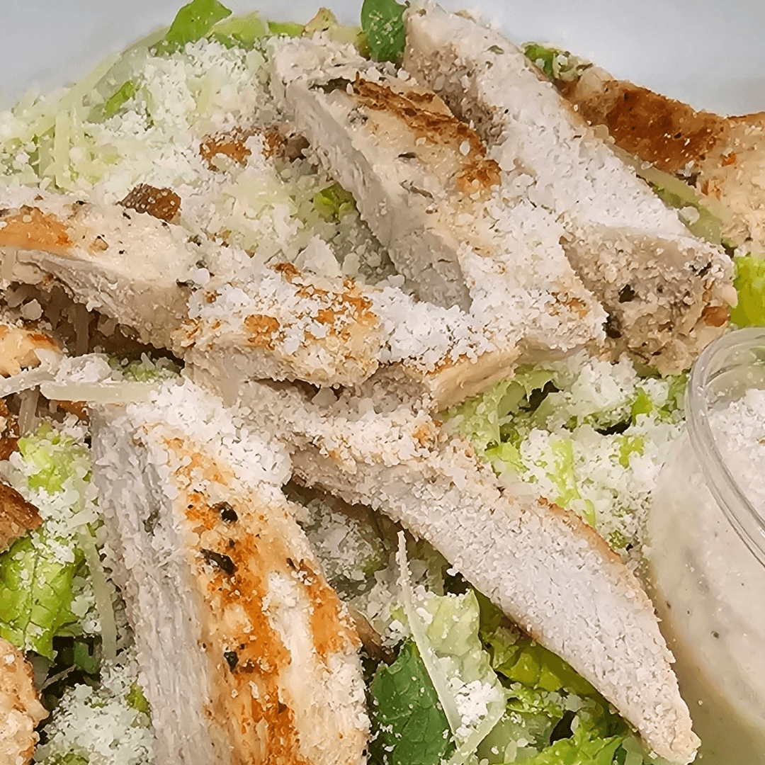 Grilled chicken, romaine lettuce, Parmesan cheese, Caesar dressing. Choice of flour wrap, whole wheat, or spinach. Served with French fries. Cole slaw and pickle upon request