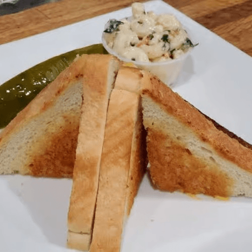Sliced turkey, melted Swiss, bacon, lettuce, tomato and mayo. Choice of plain, whole wheat, or spinach. Served with fries. Coleslaw and pickle upon request.