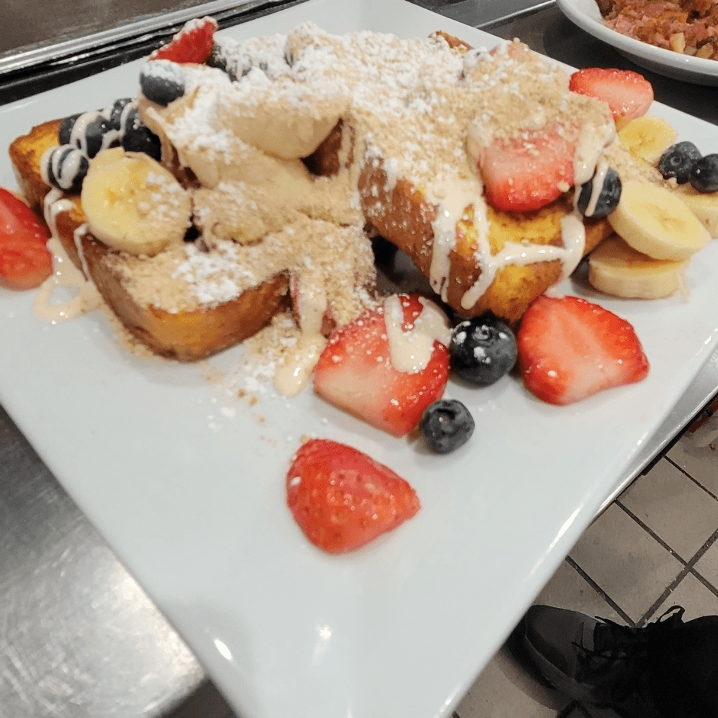 Your choice of pancakes, French toast, or waffle. Served with powdered sugar, butter and syrup