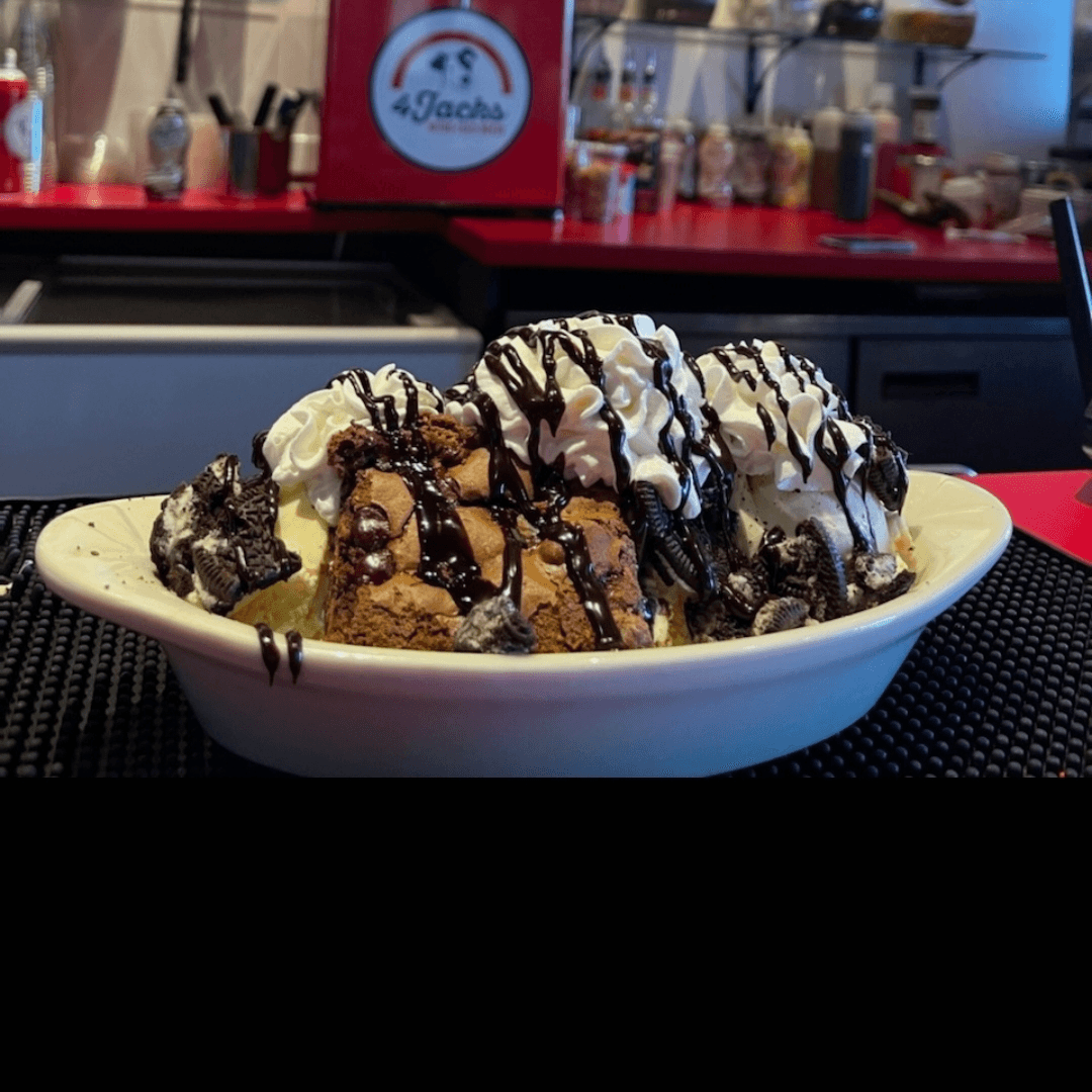 4 jacks nitro cold brew, vanilla ice cream, whipped cream. All with whipped cream.