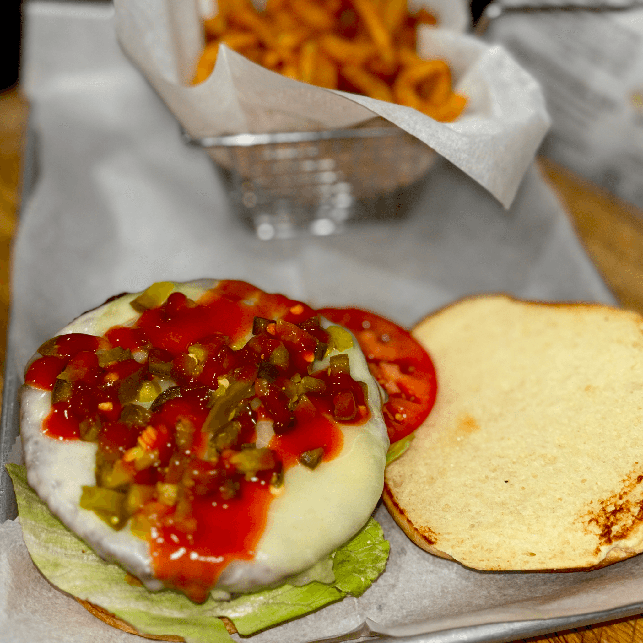 A delicious veggie patty with cabbage, corn pico de gallo, frizzled onion & chipotle mayo